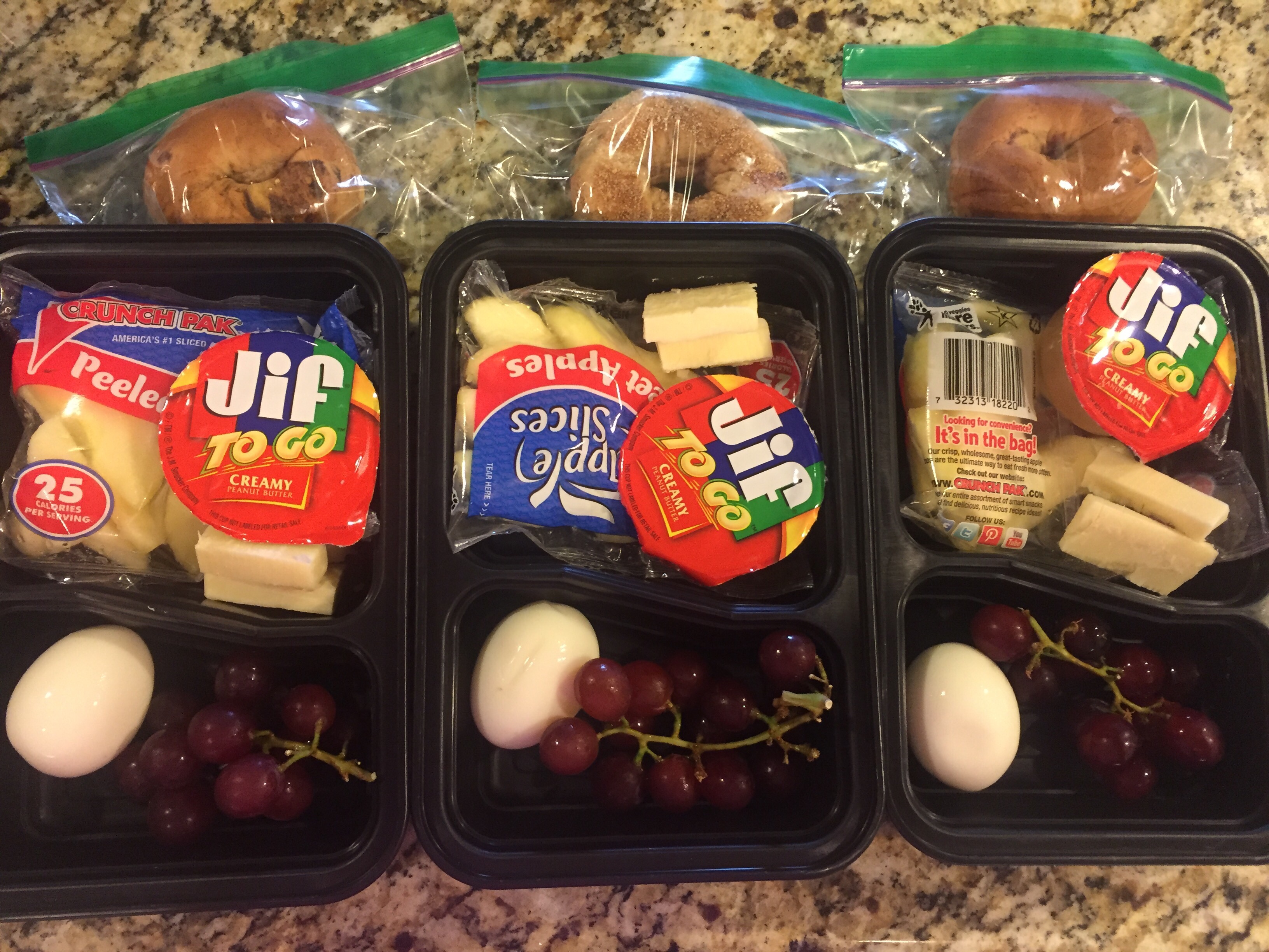 When we were on vacation recently, our schedules were completely different than when we’re at home. We stayed up later than normal, woke up later, and ate meals at different times than usual. One day, we had a late breakfast and I knew we were going to be having an early dinner. I wanted something for lunch, but nothing particularly heavy. We stopped by Starbucks and I noticed their “Protein Bistro Box” and decided to give it a try. It contained a hard‐boiled egg, sliced apples, grapes, white Cheddar cheese, multigrain bread and honeyed peanut butter. Ummm, it was PERFECT. It was just the right size for a light lunch, and I loved the variety it offered. Everything was cool, which was perfect on a hot summer day.