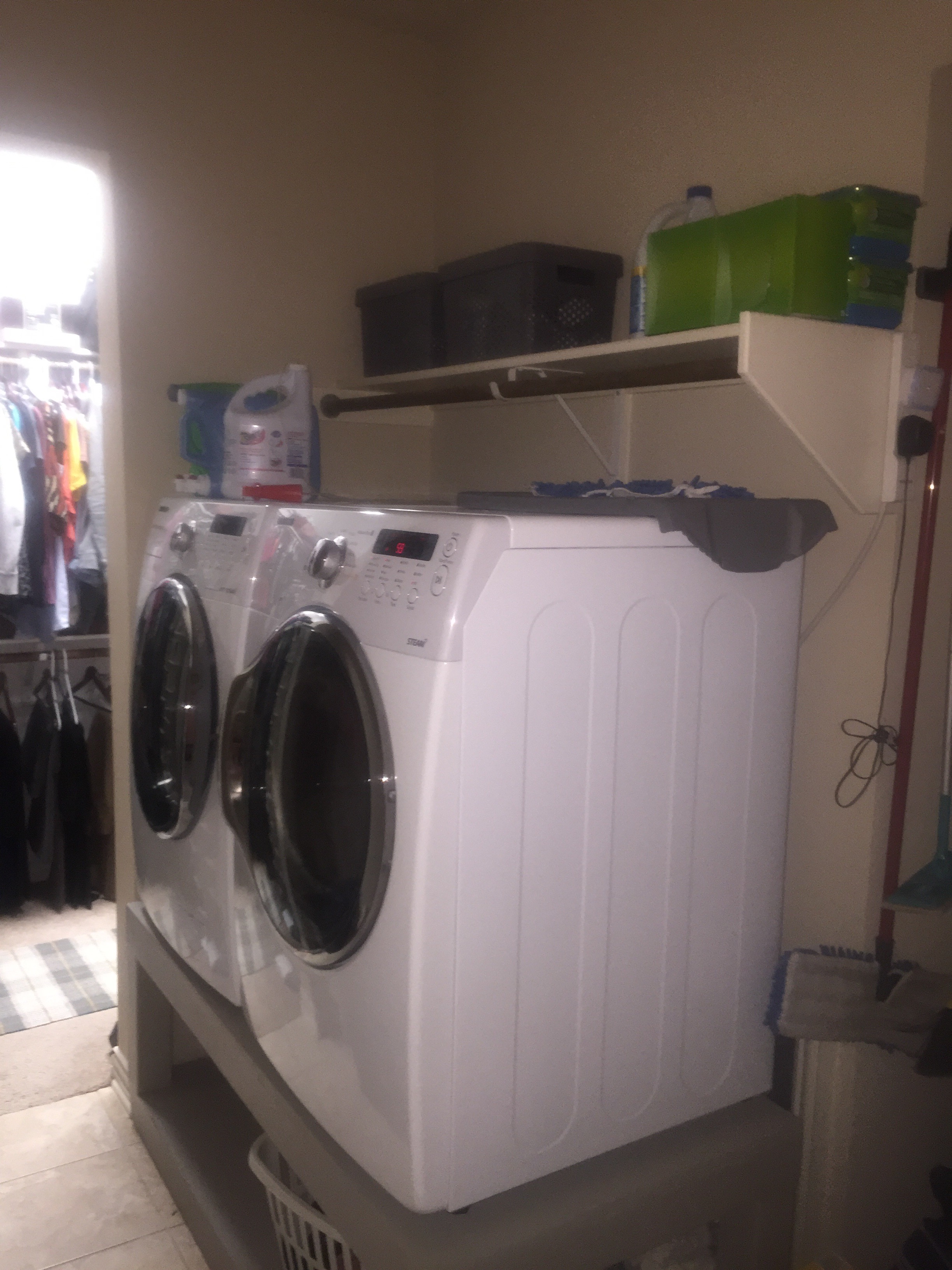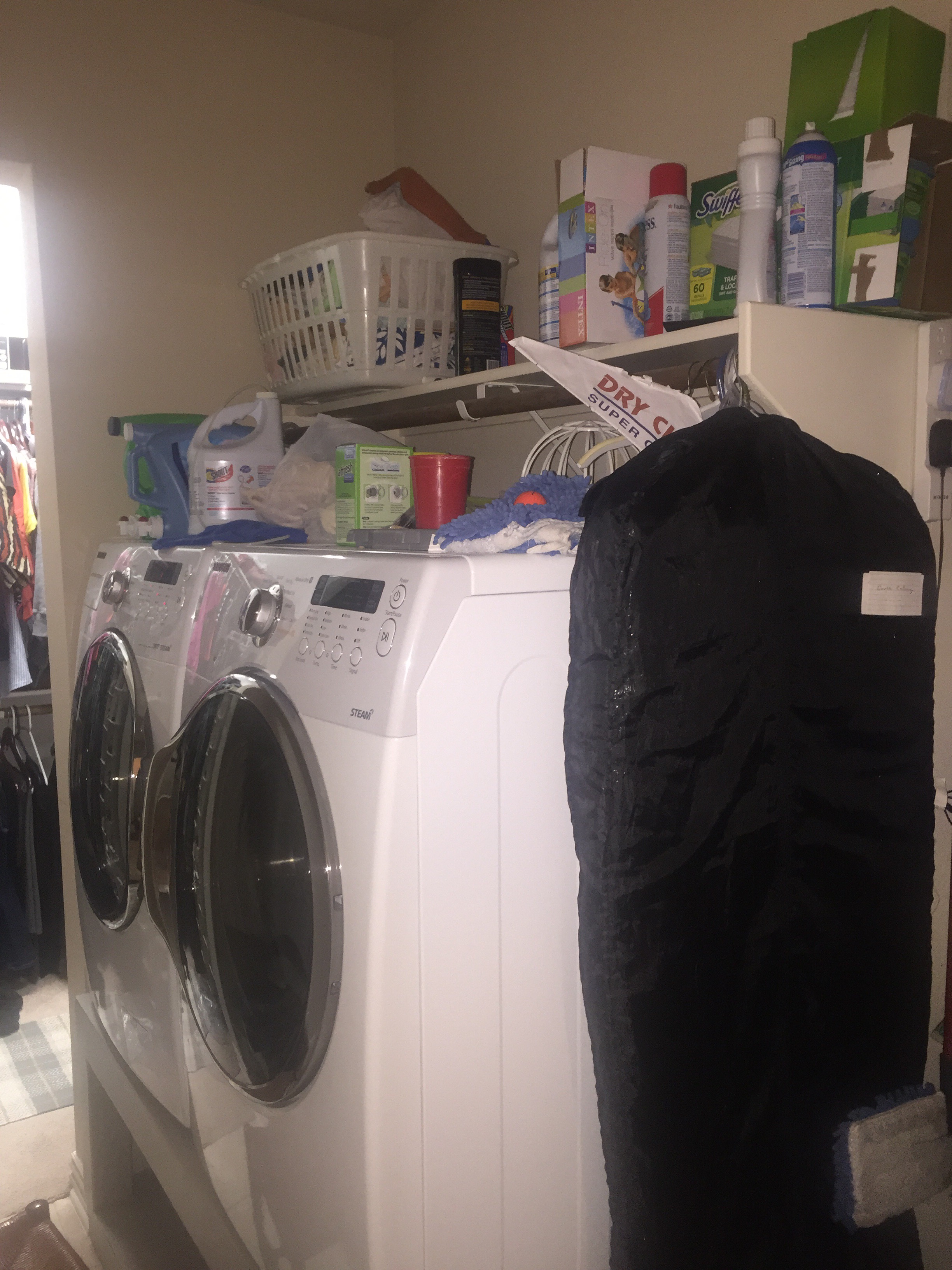 Week 3: Laundry Room – I was able to clean off the tops of the washer/dryer of all the accumulation of things that we don’t really use. I bought 2 small baskets at Target to organize the items that we need, but don’t use often.